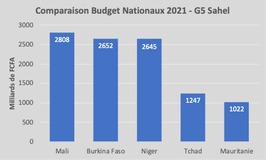 Alors pourquoi le Mali qui a plus de moyens et dépense beaucoup plus en défense aurait besoin de l’aide de militaires tchadiens pour s’offrir un minimum de sécurité ? En fait, de tous les états du G5 Sahel, le Tchad et la Mauritanie qui semblent être les plus habiles à défendre leur pays, ont paradoxalement les budgets nationaux les plus bas
